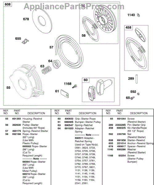 Parts for Briggs & Stratton 243431-0689-99: Rewind Starter Parts