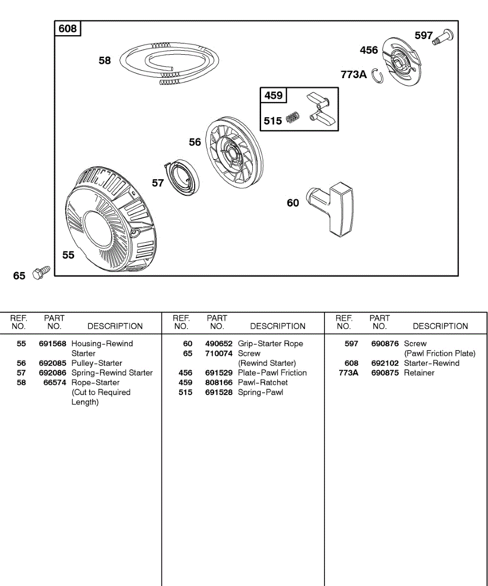 Parts for Briggs & Stratton 247437-0112-E1: Rewind Starter Parts