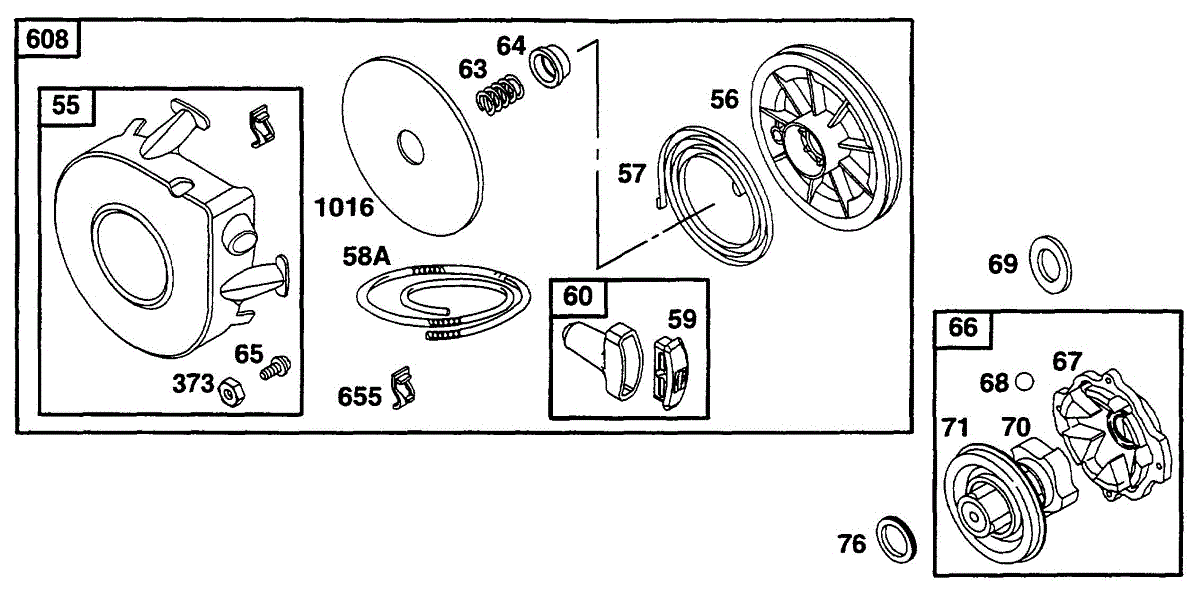 Engine won't start or pull cord doesn't retract? This rewind starter housing restores pull-start function. Moderate DIY repair for lawn equipment engines.