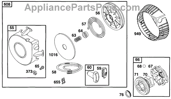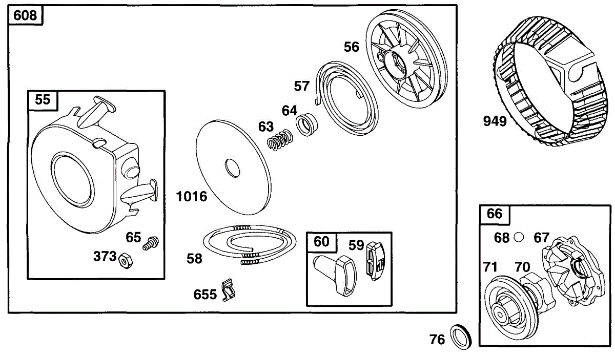 Parts for Briggs & Stratton 255707-0110-01: Rewind Starter Parts