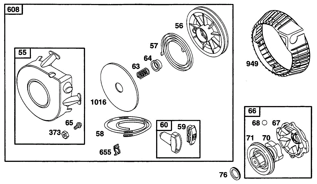 Engine won't start or pull cord doesn't retract? This rewind starter housing restores pull-start function. Moderate DIY repair for lawn equipment engines.
