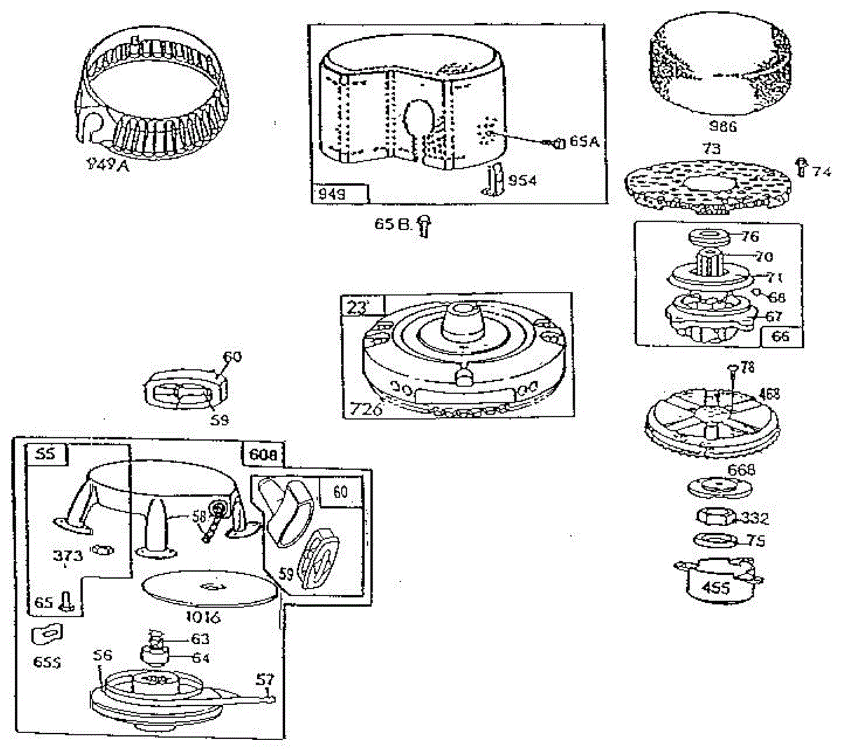 Parts for Briggs & Stratton 280700 TO 280799 (0111 - 0111): Rewind Starter Assembly Parts