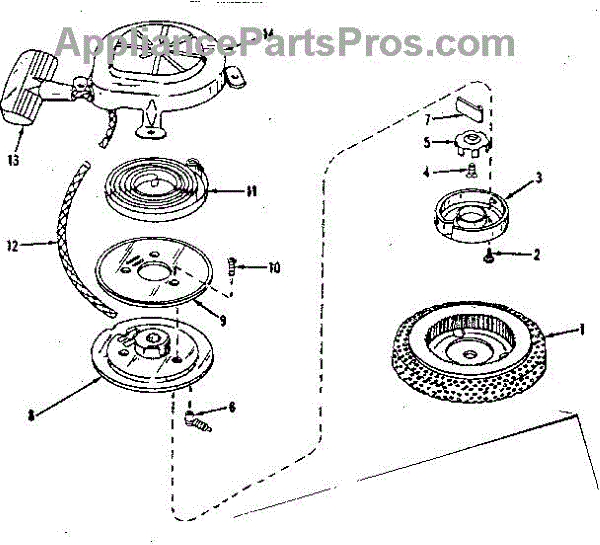 Parts for Lauson H22R-3051P: Rewind Starter No. 590358 Parts