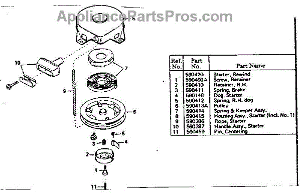 Parts for Tecumseh H50-65417L: Rewind Starter No. 590420 Parts