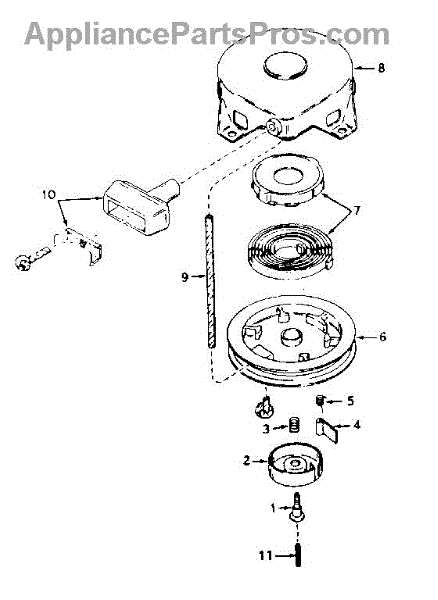 This is a starter dog that is located right next to the retainer in many types of lawn and garden equipment. It is made of durable metal. This part is responsible for engaging the recoil starting system on the engine. Sometimes the starter dog can become damaged or worn, which will result in an engine that has trouble starting. In this situation, the starter dog will need to be replaced to ensure the lawn equipment works as expected.If the starter dog needs to be replaced, a pair of pliers will be needed for the process. Place the tool on a level surface and disconnect the spark plug wire. The blade assembly and clutch assembly will need to be removed to get access to the starter dog. Take this part out of the tool and replace it with a quality new component. Reassembly the other parts before use.This is a genuine OEM replacement part that is sourced directly from the manufacturer. It is made to be compatible with lawnmowers, snowblowers, tillers, edgers, and generators manufactured by Tecumseh, Briggs & Stratton, Toro, Cub Cadet, and Craftsman. The starter dog is sold as an individual part.