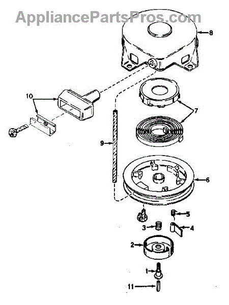 This is a starter dog that is located right next to the retainer in many types of lawn and garden equipment. It is made of durable metal. This part is responsible for engaging the recoil starting system on the engine. Sometimes the starter dog can become damaged or worn, which will result in an engine that has trouble starting. In this situation, the starter dog will need to be replaced to ensure the lawn equipment works as expected.If the starter dog needs to be replaced, a pair of pliers will be needed for the process. Place the tool on a level surface and disconnect the spark plug wire. The blade assembly and clutch assembly will need to be removed to get access to the starter dog. Take this part out of the tool and replace it with a quality new component. Reassembly the other parts before use.This is a genuine OEM replacement part that is sourced directly from the manufacturer. It is made to be compatible with lawnmowers, snowblowers, tillers, edgers, and generators manufactured by Tecumseh, Briggs & Stratton, Toro, Cub Cadet, and Craftsman. The starter dog is sold as an individual part.