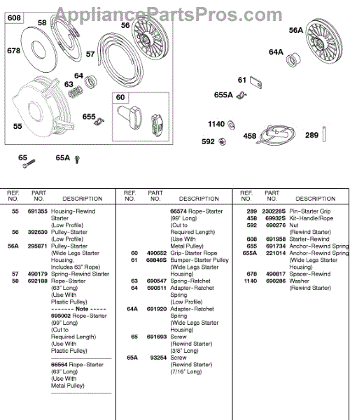 Parts for Briggs & Stratton 326431-0329-99: Rewind Starter, Rope Parts