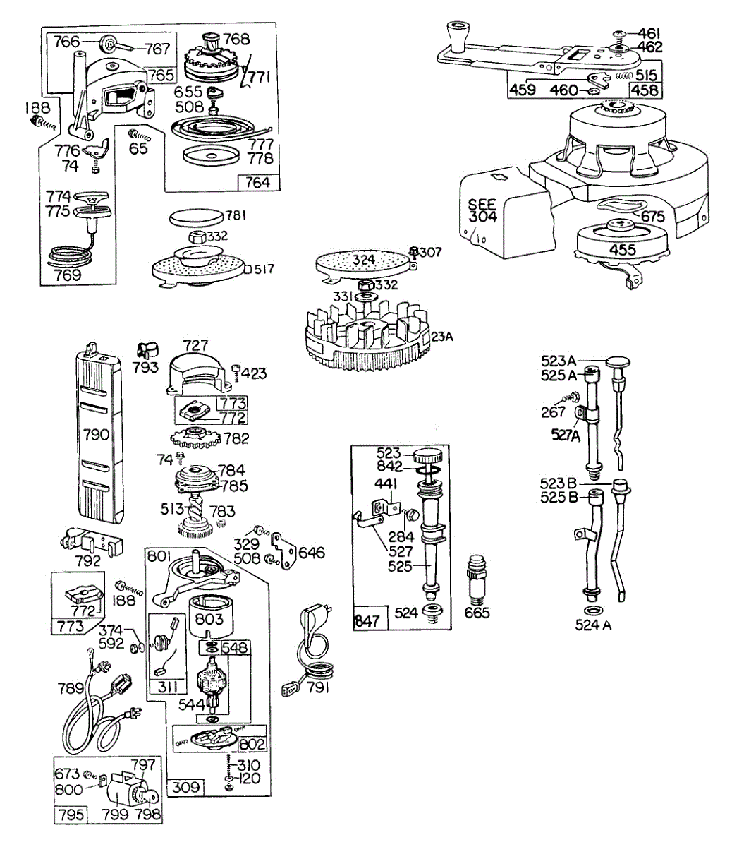 Parts for Briggs & Stratton 092506-0152-99: Rewind,Vert. Pull,Oil Fill Parts