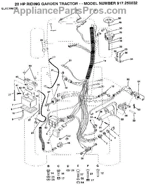 Parts for Craftsman 917250032: 20 Hp Riding Garden Tractor Parts