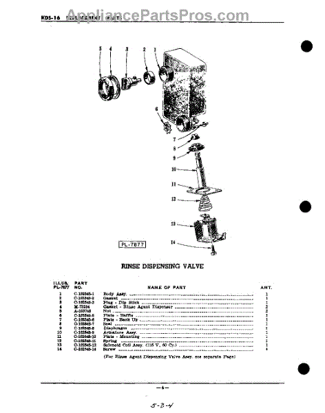 Parts for Kitchenaid KDS16SC: 04 - Rinse Dispensing Valve Parts