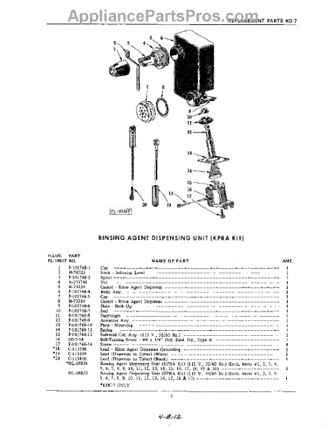 Parts for Kitchenaid KDW7: 03 - Rinsing Agent Dispensing Parts