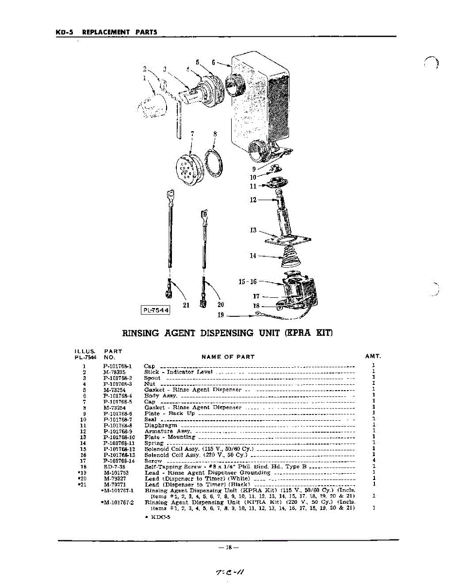 Parts for Kitchenaid KD5: 18 - Rising Agent Dispensing Parts