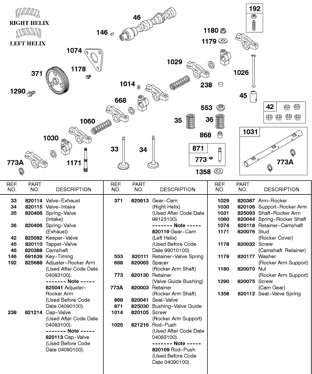 Parts for Briggs & Stratton 430447-0305-E2: Rocker Arm Shaft, Camshaft Parts