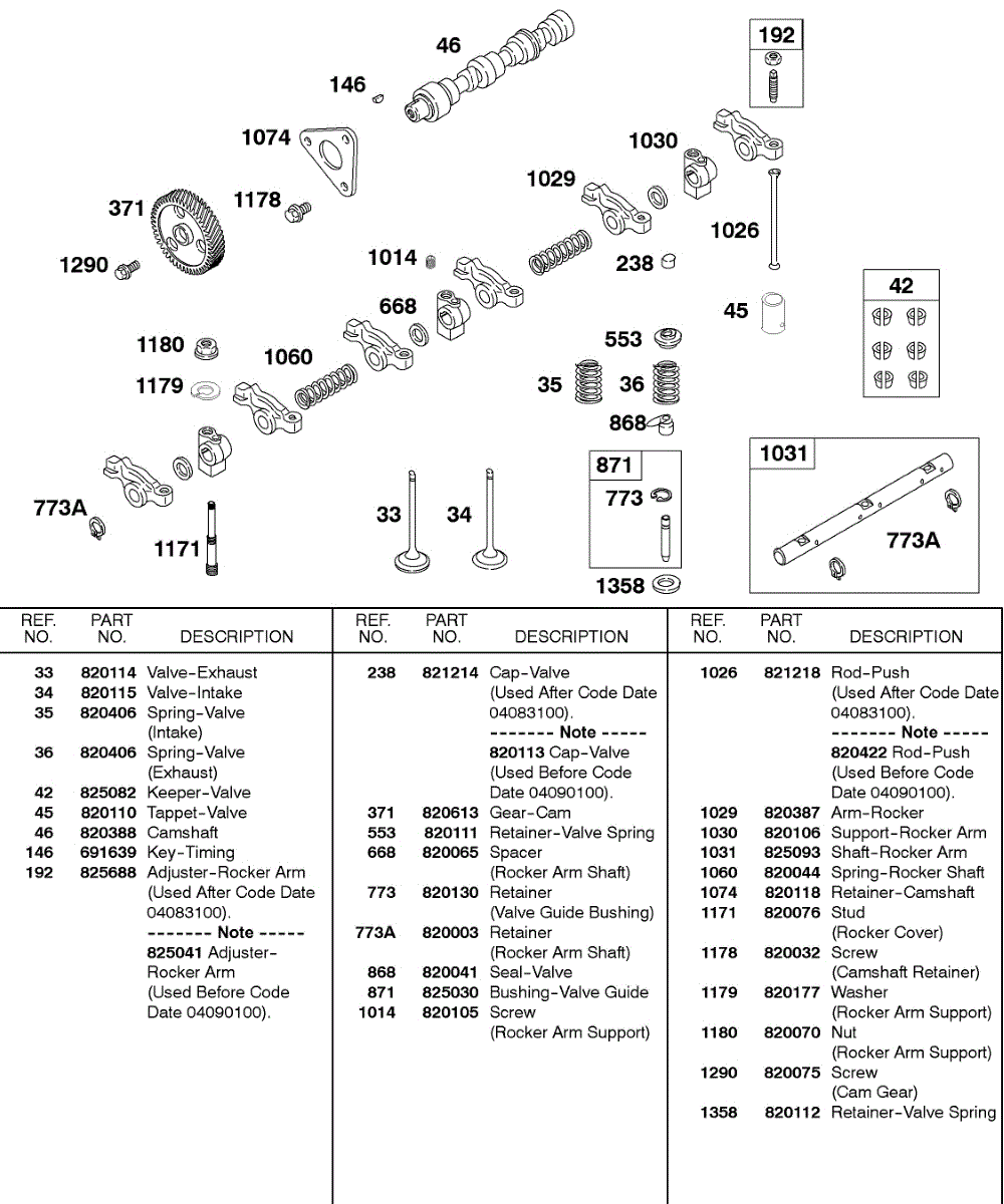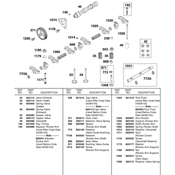 Parts for Briggs & Stratton 589447-0305-E2: Rocker Arms, Valves, Valve Springs Parts