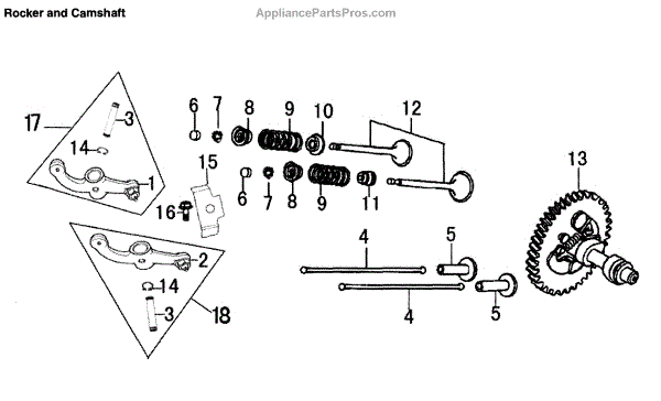 Parts for Generac 006673-0: Rocker And Camshaft Parts