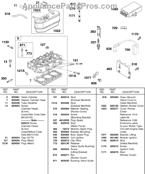 Parts for Briggs & Stratton 430447-0305-E2: Rocker Cover, Cylinder Head, Ignition Module, Coil Parts