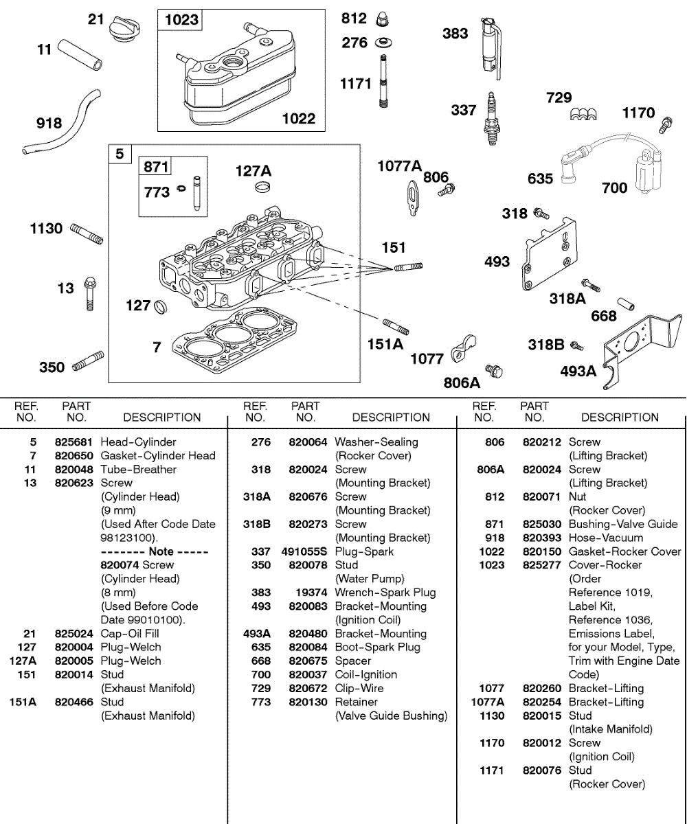 Parts for Briggs & Stratton 437447-0205-E2: Rocker Cover, Cylinder Head, Ignition Parts