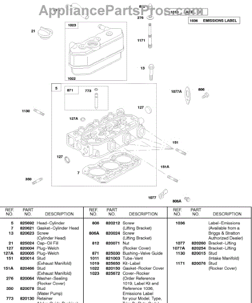 Parts for Briggs & Stratton 522447-0412-E2: Rocker Cover, Cylinder Head Parts