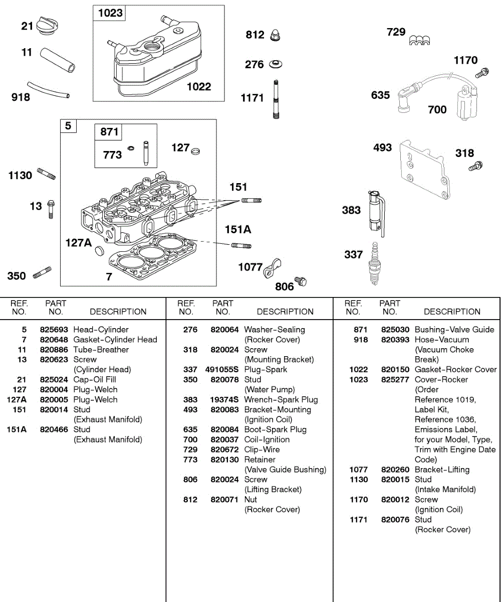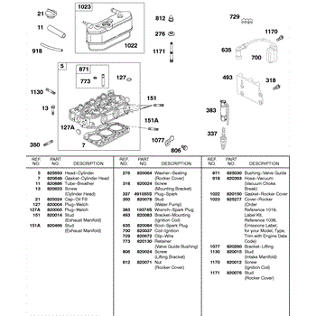 Parts for Briggs & Stratton 583447-0317-E2: Rocker Cover, Cylinder Head, Ignition Parts