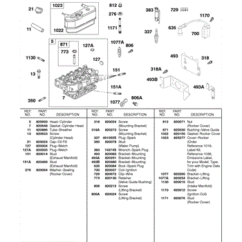Parts for Briggs & Stratton 589447-0305-E2: Rocker Cover, Cylinder Head, Ignition Parts