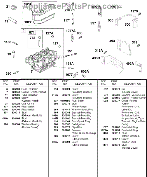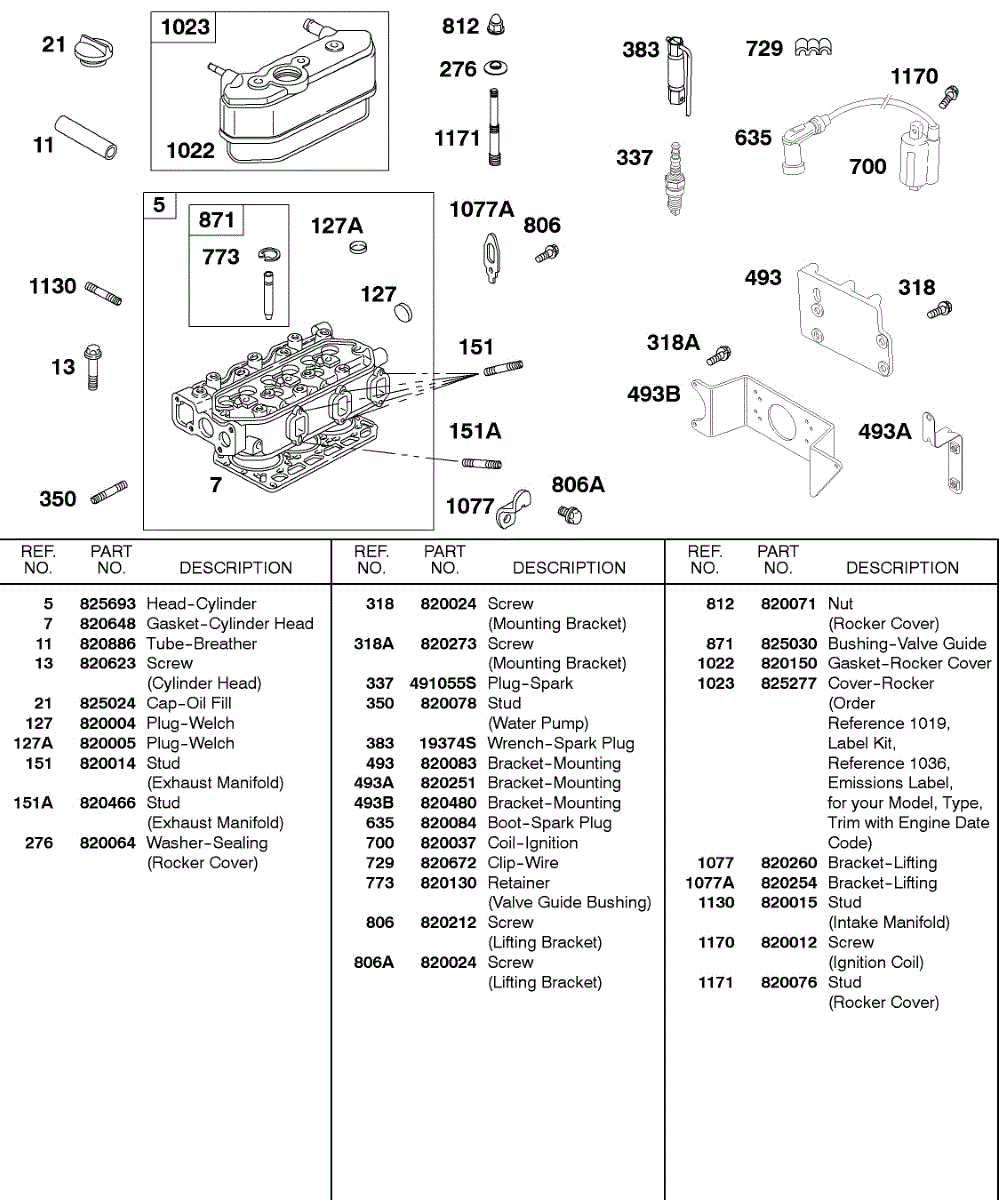 Parts for Briggs & Stratton 589447-0308-E2: Rocker Cover, Cylinder Head, Ignition Parts
