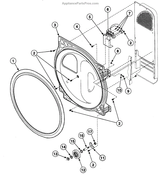 • Seals the back of the washer tub to stop water from leaking at the rear