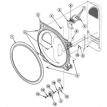 This rear bulkhead assembly with seal replaces the washer's rear tub enclosure to restore a watertight connection and support the drum. It prevents leaks and helps maintain proper tub alignment for reliable operation. What it does:
