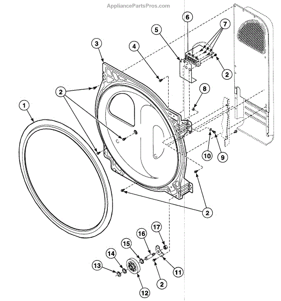 This rear bulkhead assembly with seal replaces the washer's rear tub enclosure to restore a watertight connection and support the drum. It prevents leaks and helps maintain proper tub alignment for reliable operation. What it does: