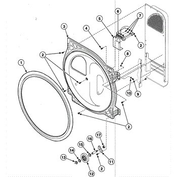 This rear bulkhead assembly with seal replaces the washer's rear tub enclosure to restore a watertight connection and support the drum. It prevents leaks and helps maintain proper tub alignment for reliable operation. What it does:
