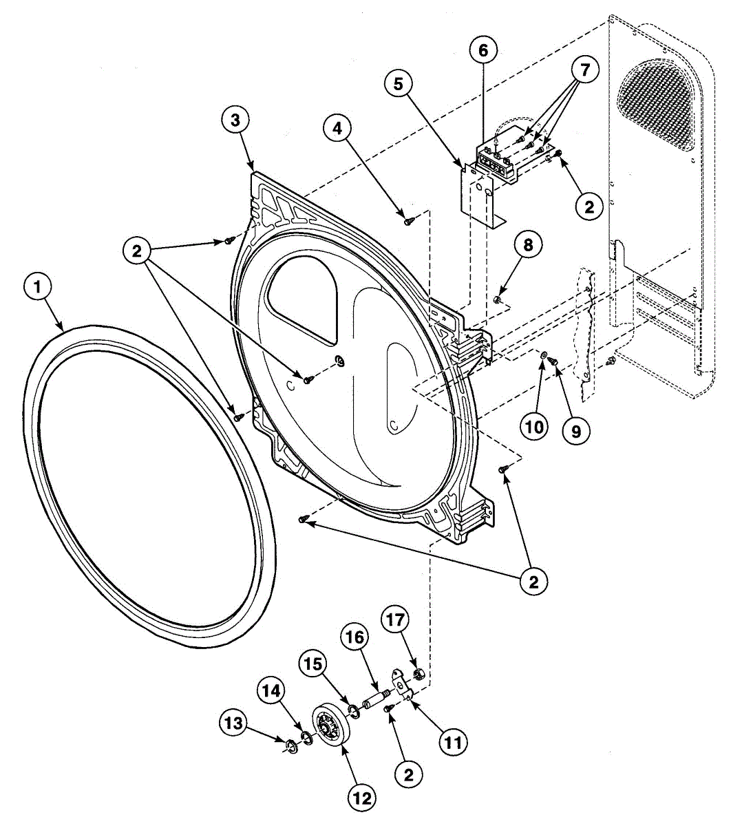 Seals the back of the dryer drum to prevent air leaks and maintain proper alignment. Replace if you notice poor drying or air escaping. Confirm fit with your model.