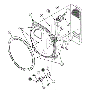 This rear bulkhead assembly with seal replaces the washer's rear tub enclosure to restore a watertight connection and support the drum. It prevents leaks and helps maintain proper tub alignment for reliable operation. What it does: