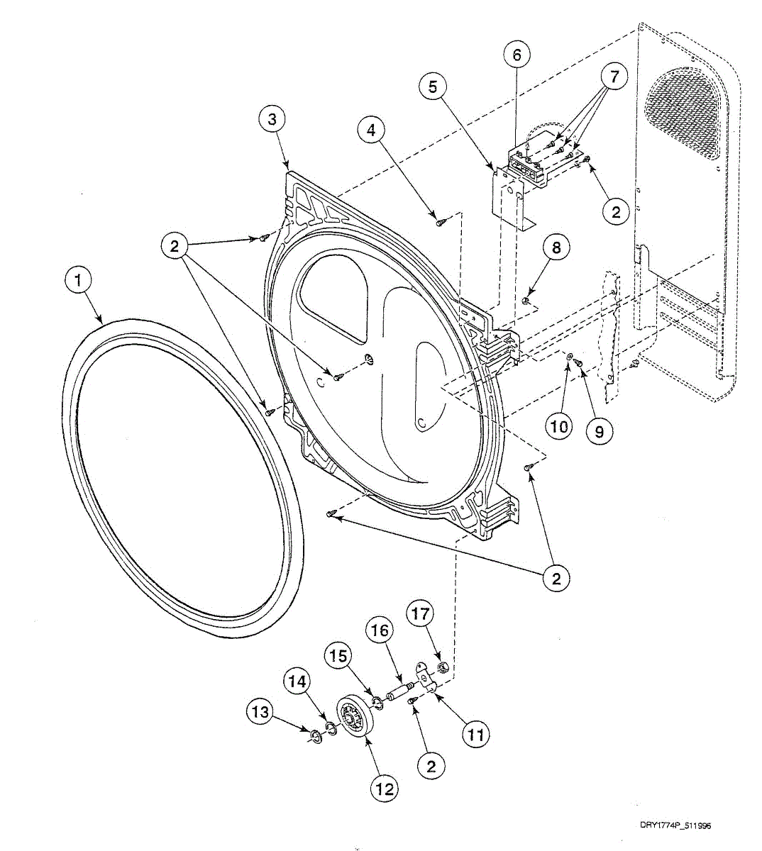 Seals the back of the dryer drum to prevent air leaks and maintain proper alignment. Replace if you notice poor drying or air escaping. Confirm fit with your model.