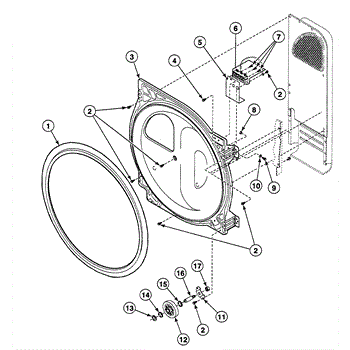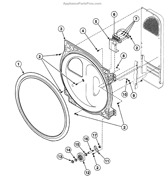 Seals the back of the dryer drum to prevent air leaks and maintain proper alignment. Replace if you notice poor drying or air escaping. Confirm fit with your model.