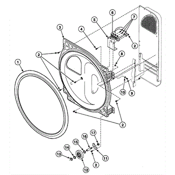 Seals the back of the dryer drum to prevent air leaks and maintain proper alignment. Replace if you notice poor drying or air escaping. Confirm fit with your model.