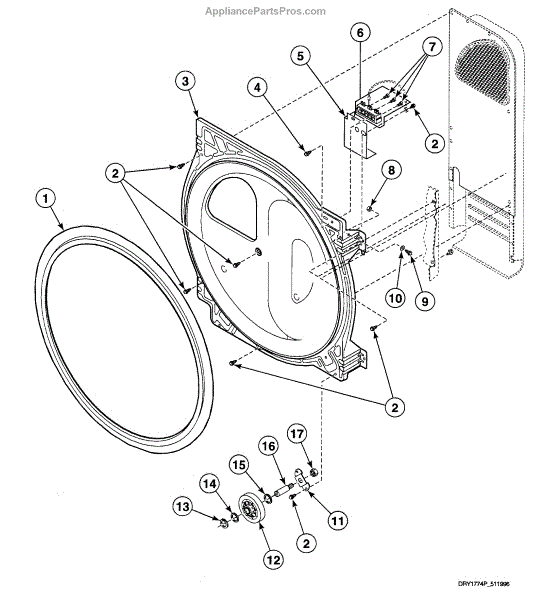 Seals the back of the dryer drum to prevent air leaks and maintain proper alignment. Replace if you notice poor drying or air escaping. Confirm fit with your model.