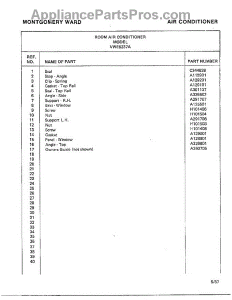 Parts for Frigidaire 5237A: Room Air Conditioner Page 10 Parts