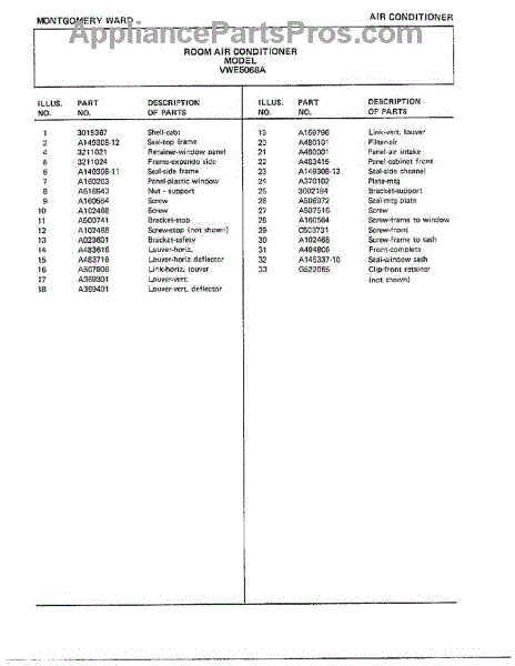 Parts for Frigidaire 5068A: Room Air Conditioner Page 2 Parts