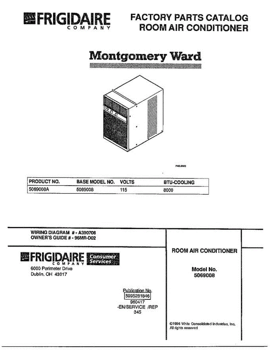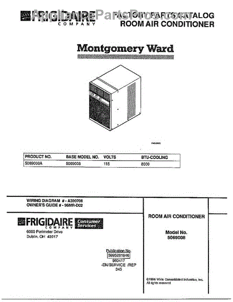 Parts for Frigidaire 5069008A: Room Air Conditioner Parts