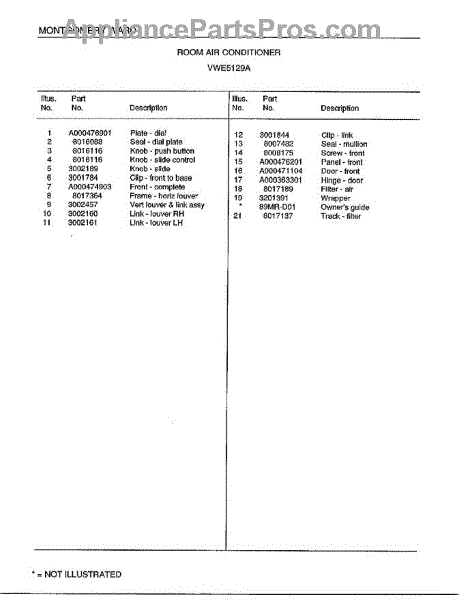 Parts for Frigidaire 5129A: Room Air Conditioner Page 2 Parts