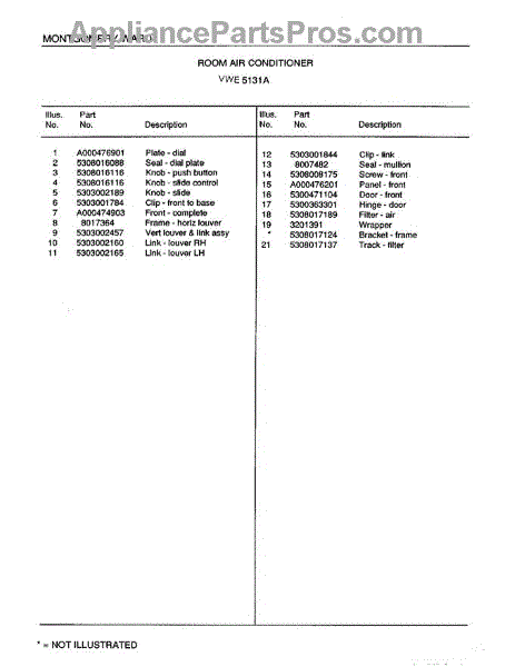 Parts for Frigidaire 5131A: Room Air Conditioner Page 2 Parts