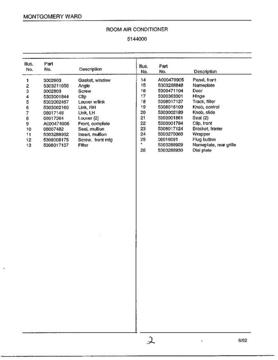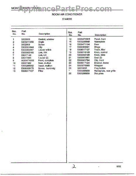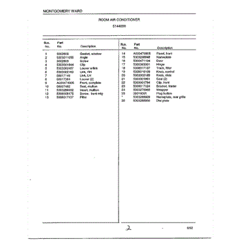 Parts for Frigidaire 5144000: Room Air Conditioner Page 2 Parts