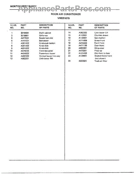Parts for Frigidaire 5167B: Room Air Conditioner Page 2 Parts