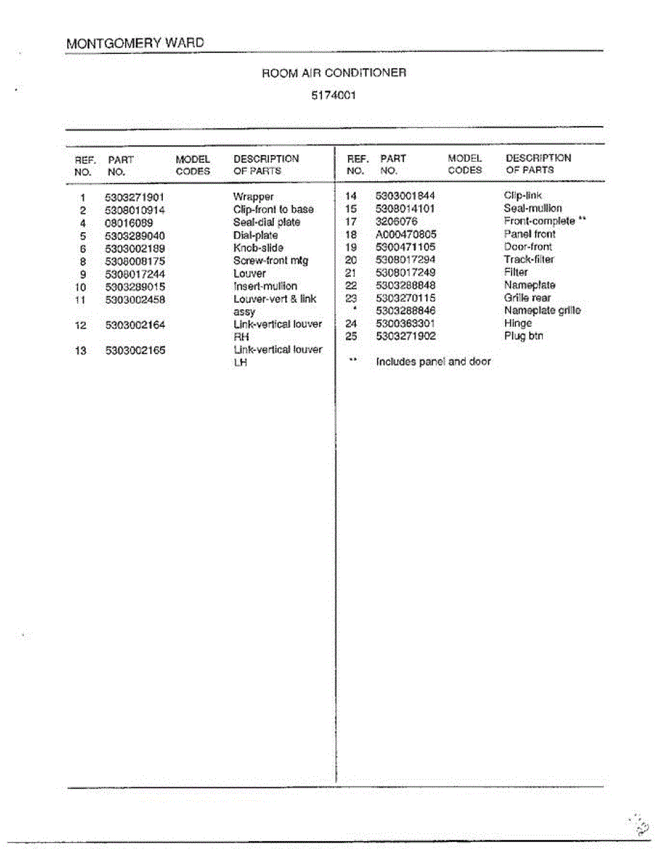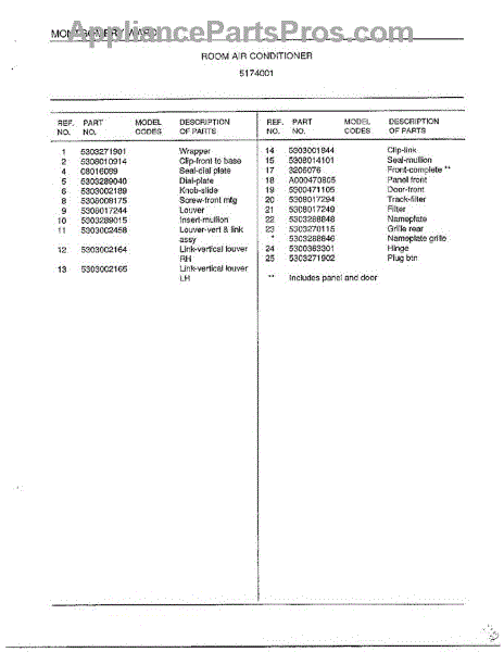 Parts for Frigidaire 5174001: Room Air Conditioner Page 2 Parts