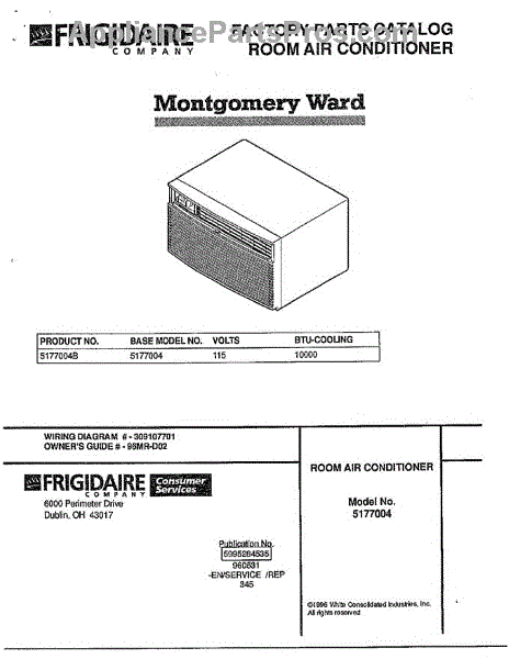 Parts for Frigidaire 5177004B: Room Air Conditioner Parts