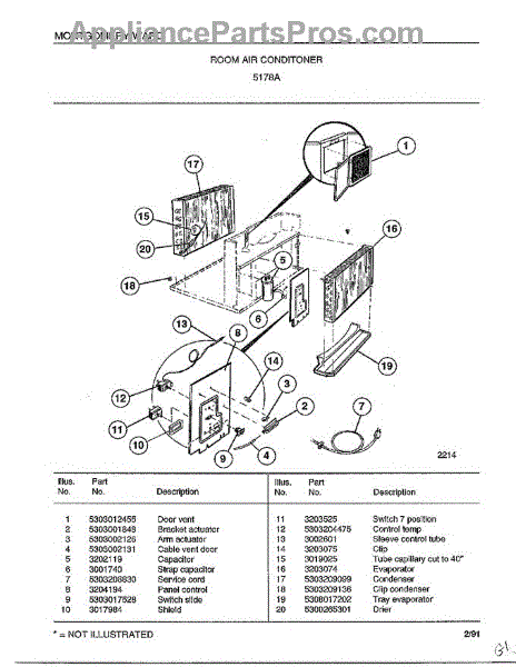 Parts for Frigidaire 5178A: Room Air Conditioner Page 2 Parts