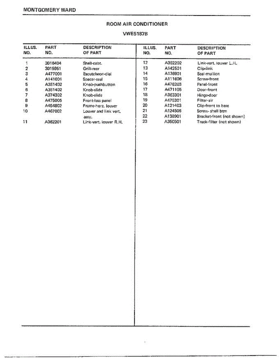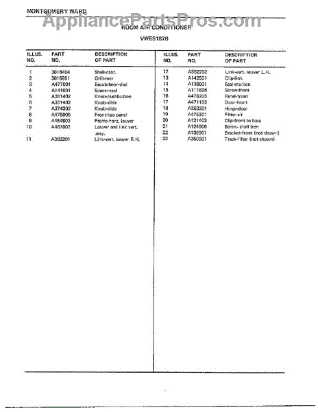 Parts for Frigidaire 5187B: Room Air Conditioner Page 2 Parts