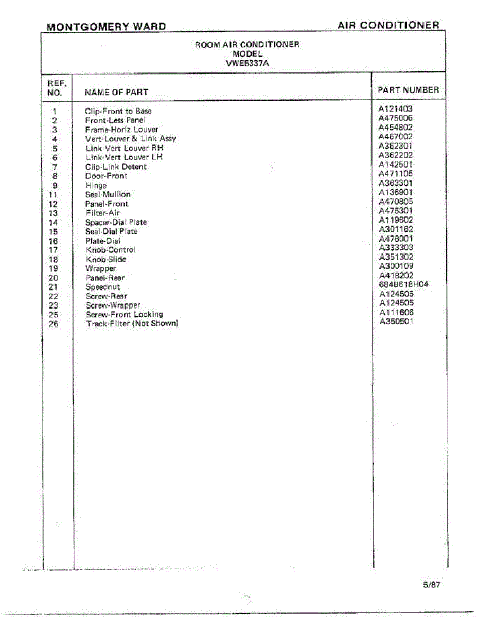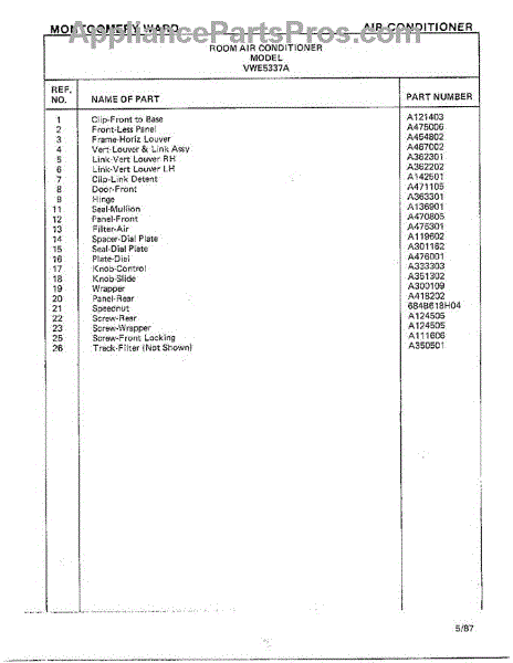 Parts for Frigidaire 5337A: Room Air Conditioner Page 2 Parts