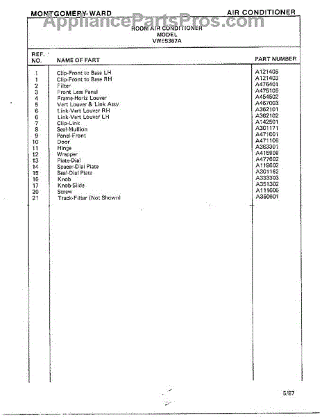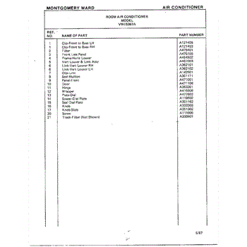 Parts for Frigidaire 5367A: Room Air Conditioner Page 2 Parts