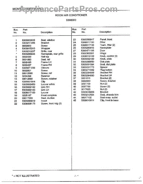 Parts for Frigidaire 5368000: Room Air Conditioner Page 2 Parts