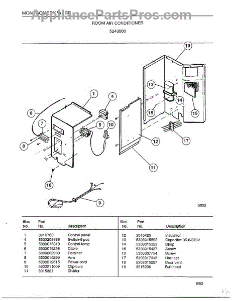 Parts for Frigidaire 5243000: Room Air Conditioner Page 3 Parts
